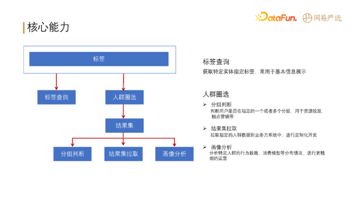 - 人群圈选:标签生产出来之后进行应用,圈选出标签对应的人群。