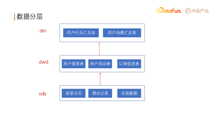 - 最下层是 ods 层,包括用户登录日志、埋点记录日志、交易数据以及各种数据库的 Binlog 数据。