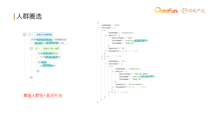 - 人群圈选:分为实时和离线圈选。圈选结果主要用于: