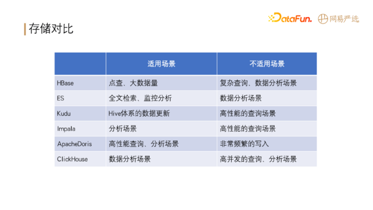 在大数据领域,各种存储计算引擎有各自的适用场景,如下表所示: