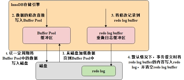 InnoDB引擎中基于Buffer Pool和redo log buffer的交互流程图如下所示。