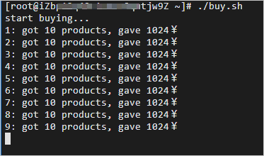 b.添加完成后,按下Esc键后,输入:wq后按下Enter键保存并退出。创建脚本buy.sh,将如下代码添加到脚本buy.sh中。添加完成后,按下Esc键后,输入:wq后按下Enter键保存并退出。