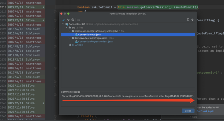 考虑到从 mysql-connector-java:8.0.26 的 isAutoCommit 更改到了 mysql-connector-java:8.0.28 的 isAutocommit 肯定是有原因的,带着弄清楚代码作者提交这个改动的意图,去翻了下 github。