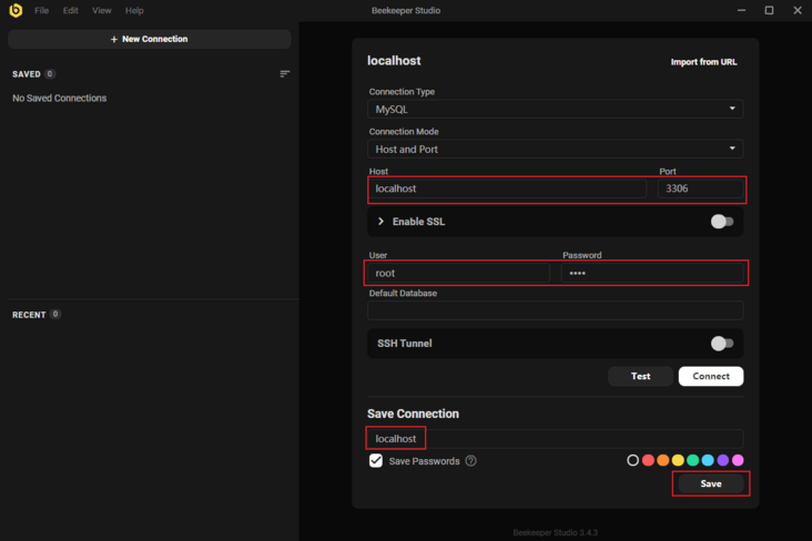 - 这里我们创建一个MySQL连接,输入连接信息,然后点击保存按钮即可;