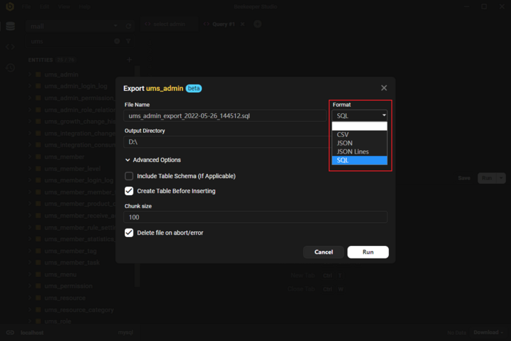- 在使用Beekeeper Studio的编辑器写SQL的时候,支持SQL语法高亮,对数据库表和字段都可以自动提示;