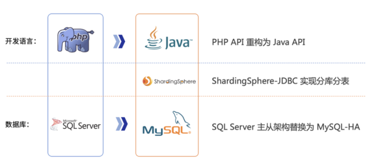 使用 Java 语言重构十余个模块,通过 ShardingSphere+ MySQL 构建分布式数据库解决方案,顺利完成异构数据库在线迁移,案例亮点如下。