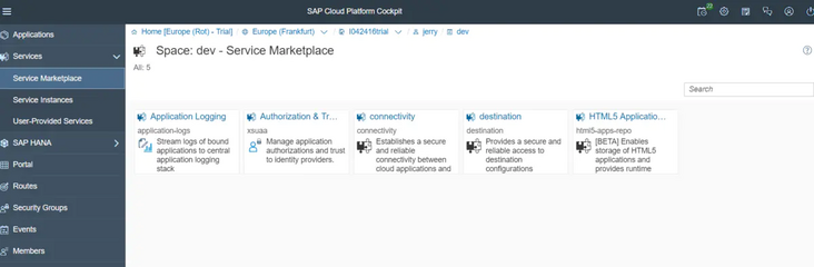 我想在 SAP 云平台的 Cloud Foundry 环境下使用 MongoDB 服务,但是在 Service Marketplace 上找不到这个服务。
