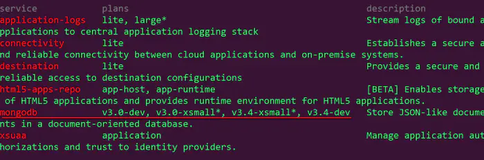 查看当前 SAP 云平台的 MongoDB 服务的版本号:在我使用的 SAP 云平台上是v3.0-dev