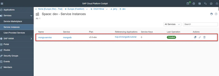 下面是在 SAP 云平台 CloudFoundry 环境使用 MongoDB 服务的详细步骤。