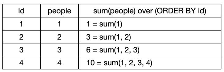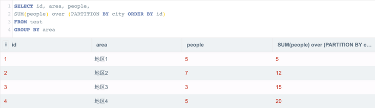 SELECT *, sum(people) over (PARTITION BY city ORDER BY people) FROM test