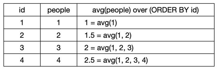 然而使用窗口函数的聚合却不会导致返回行数减少,那么这种聚合是怎么计算的呢?我们不如直接看下面的例子: