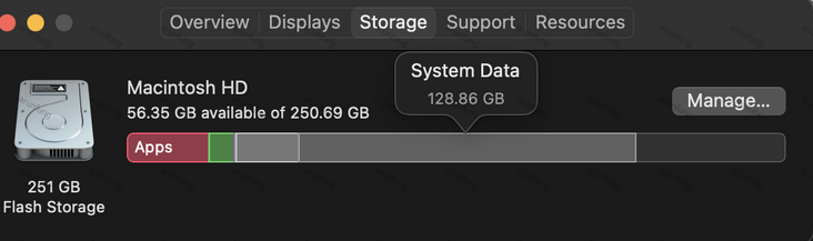 公司配的电脑也已经使用了一年多了,期间也升级了系统,使用了 beta 版的MacOS 12,体验也还是不错的,但由于使用的时间也比较久了,系统缓存占了一半,并且还删不掉,以及电脑时不时卡顿后自动重启。所以就趁着春节把系统重装一下,提升下使用体验。