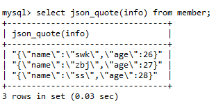 将字符串引用为json值,也就是把字符串转为带双引号的字,跟json_unquote相反