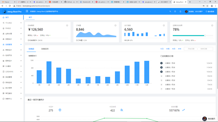 原来作为桌面端软件的开发者,用的多是C++和C#。最近一年,因为团队的转型,面向企业的信息化系统的开发,刚开始确实感觉有点茫然,幸好在github接触到了Jeecg这套前后端分离的框架,它集成的用户认证、权限认证、部门管理、系统管理等工具,确实给刚入门的开发者很大的方便和信心,借助这部工具,我们在今年以来,已经完成两套信息系统的开发。这套框架的优点很多很多,集成的技术也都是最新的,通过对他的学习可以把前后端分离开发,微服务等先进技术都无缝集成到业务场景中来。确实是快速开发的利器。