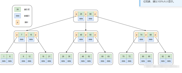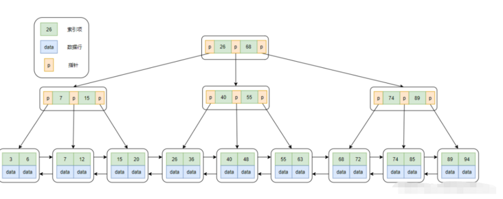 每个节点可能存储多个元素,节点内元素是有序的,每一个元素也会对应一份数据行(当然也有可能是主键索引项,或者数据行的地址)。