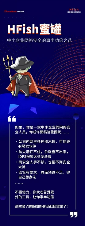 HFish 是一款基于 Golang 开发的社区免费蜜罐,可提供多种网络服务和 Web 应用模拟。