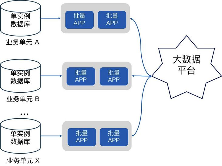 3.批量系统与联机交易系统分离。前面提到跟联机系统是因为资源的考虑做了一个复用,现在拆分之后实际上跟联机就已经完全剥离了,并且没有像单机数据库的主备复制延迟,可以最大化资源利用率来提升批量效率。