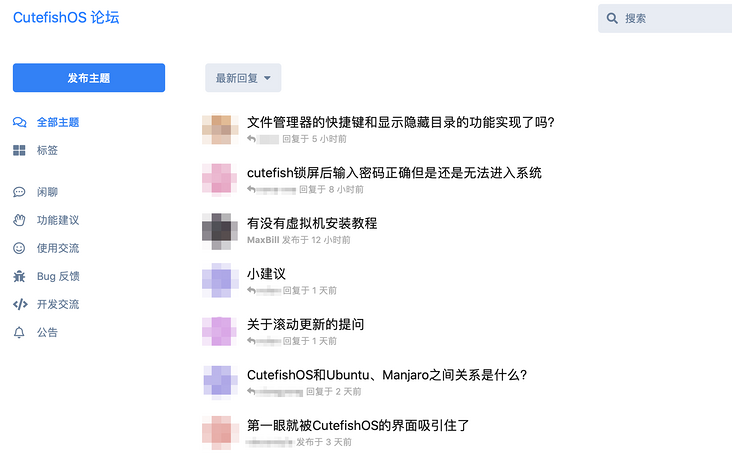 抱着好奇心去它的论坛里看了一下,发现有不少Linux爱好者在CutefishOS论坛里发帖交流,目前来看还是有不少尝鲜的人,于此同时也提出了不少问题和建议。