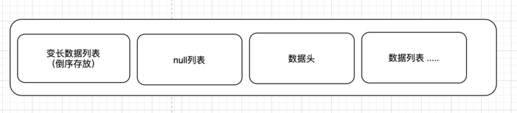 变长字段的长度列表,null值列表,数据头,column01的值,column02的值,column0n的值......