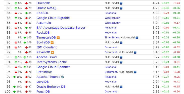 本次DB-Engines 数据库引擎 9 月榜单具体如下(暂选前 100 名):