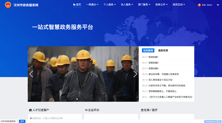 印象中,无远开发平台只适合做强业务逻辑和重结构化的信息管理系统,实际上,只需稍作配置,也能实现偏重于前端展示的各种网站,比如下图展示的政务型网站: