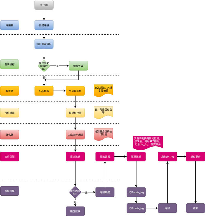 - 服务端先看下查询缓存,对于更新某张表的SQL,该表的所有查询缓存都失效。