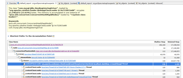 点击CurrentHashMap,右键后List objects > with incoming references查看是哪些对象引用了该对象