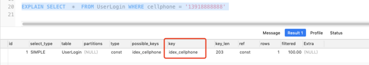 可以看到的确使用了该索引进行查询