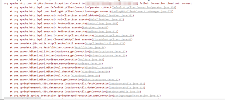 有一天,他突然发现,在本地使用jdbc-restful方式去连接单机的TDengine是OK的,连接集群却会报错——timed out。