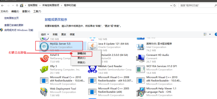 安装程序。找到控制面板--> 程序和功能,卸载