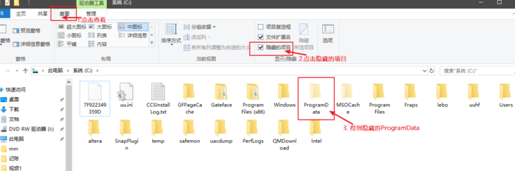 盘中的查看,--> 再点击隐藏的项目的功能,就能得到了。