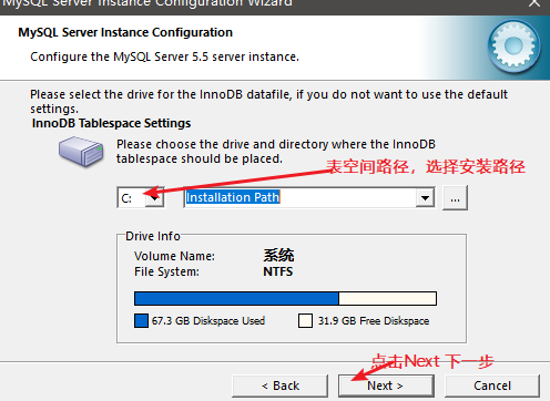 选择表空间的路径,默认即可。按