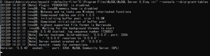 MySQL 服务已成功停止。