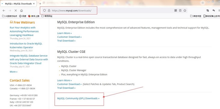 ②进入下载页面后,找到mysql社区版本MySQL Community (GPL) Downloads点击进入