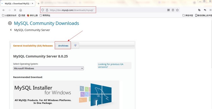 ④进入后,点击mysql版本归档页面