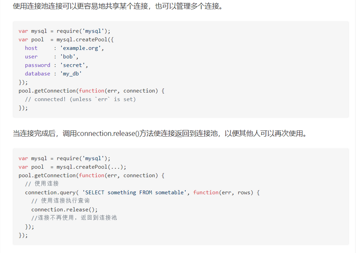 我们先来看看mysql模块的使用方法,官方推荐我们这样建立连接