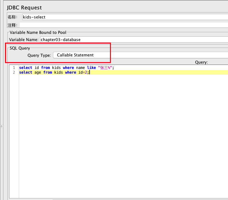 Sampler 中,SQL Query -> Query Type