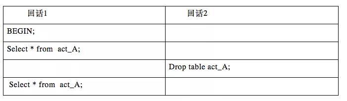 # SESSION A mysql> begin; mysql> select error from test2; ERROR 1054 (42S22): Unknown column 'error' in 'field list' # SESSION B mysql> alter table test2 add test3 int; //等待SESSION A提交或回滚; # SESSION C mysql> show processlist; +-----+------+-------+------+--------------+--------+-----------------------------------------+------------ | Id | User | Host| db | Command | Time | State | Info |+-----+------+------+----- +--------------+--------+------------------------------------------+------------ | 267 | root | local | test | Sleep | 7 | |NULL | 271 | root | local | test | Query | 3 | Waiting for table metadata lock | alter table test2 add test3 int | | 272 | root | local | NULL| Query | 0 | starting | show processlist | 311 | root | local | NULL | Sleep | 413 | | NULL +-----+------+-----------+--------+---------+------+-------------------------------------------+-------------- 4 rows in set (0.00 sec) # SESSION D mysql> select * from information_schema.innodb_trx; Empty set (0.00 sec)