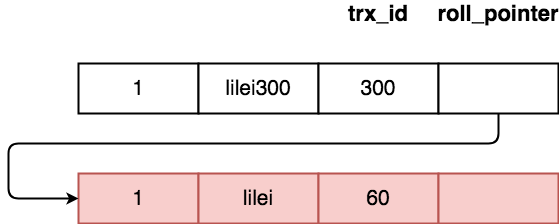 Mysql会为每一行记录生成两个字段,trx_id(事物id), roll_pointer(回滚指针), 执行一个事务修改每一条数据的时候,会并将原来的数据复制一份,生成undo log, 并修改原来数据相应的属性,将数据的 roll_pointer(回滚指针) 指向undo log