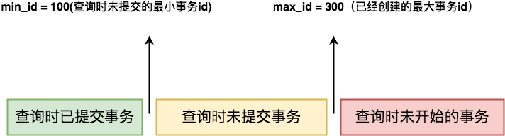 - 如果trx_id 小于min_id, 则事物在查询之前就已经提交,数据可见