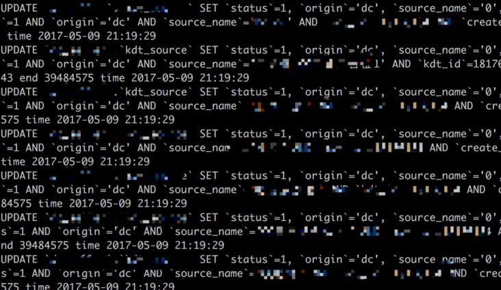 我赶紧登上服务器,查看了这段时间的binlog,发现了大量的update tablename set source_name=0的语句,利用binlog2sql进行了解析,项目地址:binlog2sql