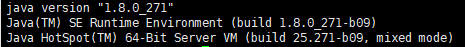 # 修改环境配置文件 vi /etc/profile # 编辑配置文件,在里面添加如下三行 export JAVA_HOME=/usr/java/jdk1.8.0_271 export PATH=$JAVA_HOME/bin:$PATH export CLASSPATH=.:$JAVA_HOME/lib/dt.jar:$JAVA_HOME/lib/tools.jar # 使环境变量生效 source /etc/profile # 验证是否配置成功,查看java版本 java -version