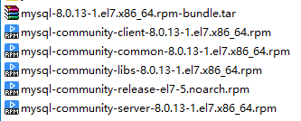 下载bundle包,解压出其中如图所示的五个文件上传至服务器,依次安装mysql-community-common、mysql-community-libs、mysql-community-client、mysql-community-server、mysql-community-release。