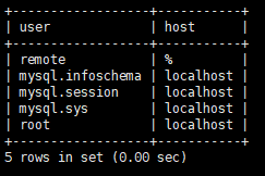设置完防火墙之后仍然不能远程登录,因为我们没有授权用户,先查询一下用户表: