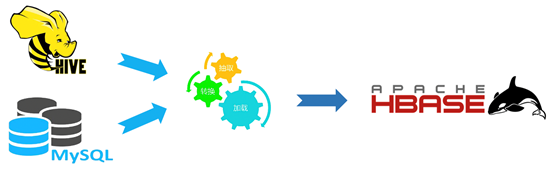 先以一个典型的离线计算场景为例,我们希望通过简单的SQL即可达成目标,即用Hive数据与MySQL数据相融合,然后回写到HBase。