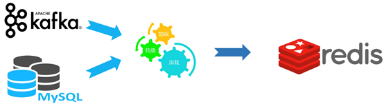 类似的,如果是一个典型的实时计算场景,我们也希望能通过一个简单的SQL来完成Kafka数据流与MySQL的融合再回写到Redis这样的需求,例如: