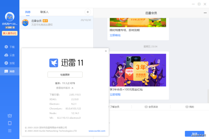 - 迅雷使用的 Electron 版本是 9.2.1,vscode 也是这个版本,好神奇!非常好奇为何业界都用这个版本,事实上 electron 9.x 最新版本已经更新到 9.3.3 了(2020年10月28日)这个 9.2.1 有什么魔力让业界都用它吗