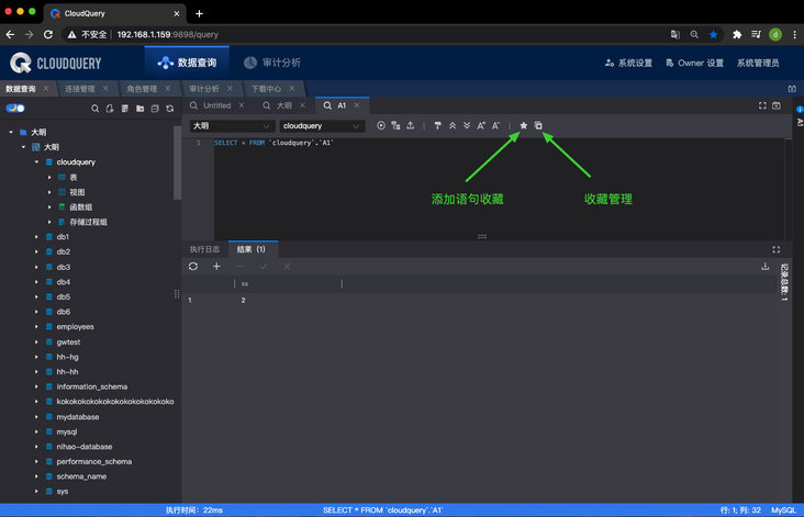 1、支持 SQL 语句收藏,支持对收藏语句的自定义命名。