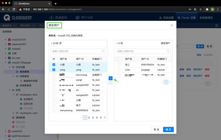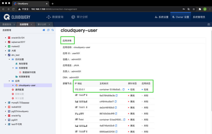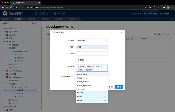3、支持达梦数据源的应用账号的授权管理和应用分析。