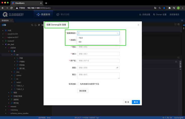 1、支持达梦数据源 7.6 版本和 8.0 版本。